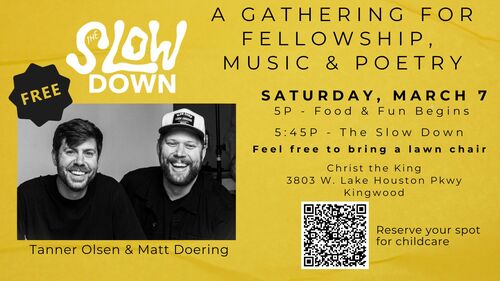 We're in Kingwood, a suburb of Houston, Texas. We worship together, do life together, and serve together.