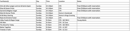 Questions on any of the groups please contact Denise Thiele - deniset@christ4u.net