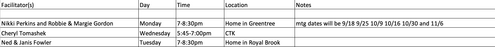 Below is a list of facilitators and locations. Please use the realm link to sign up.