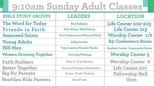 Click the links below to learn about the different Sunday School classes we offer.